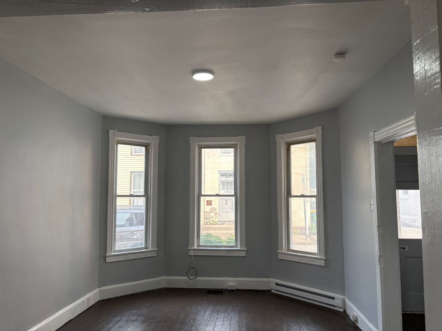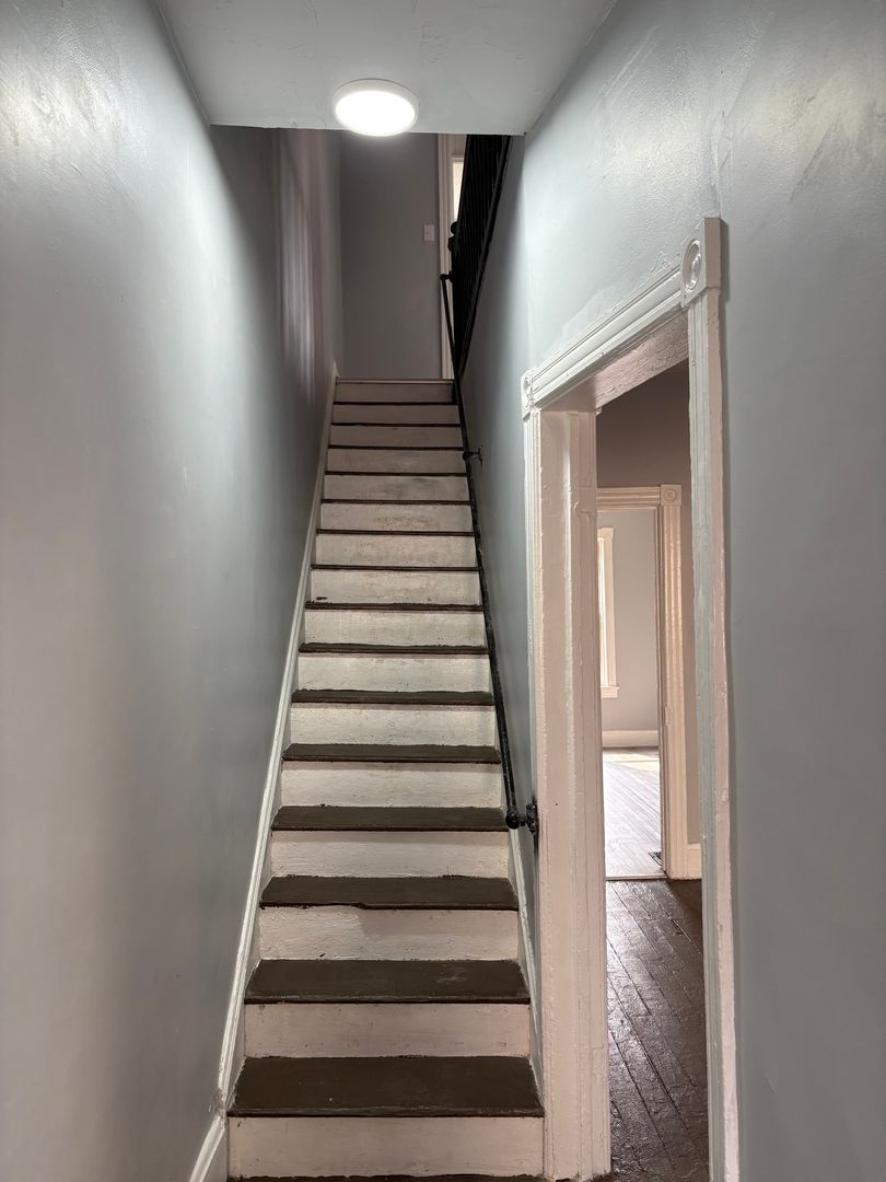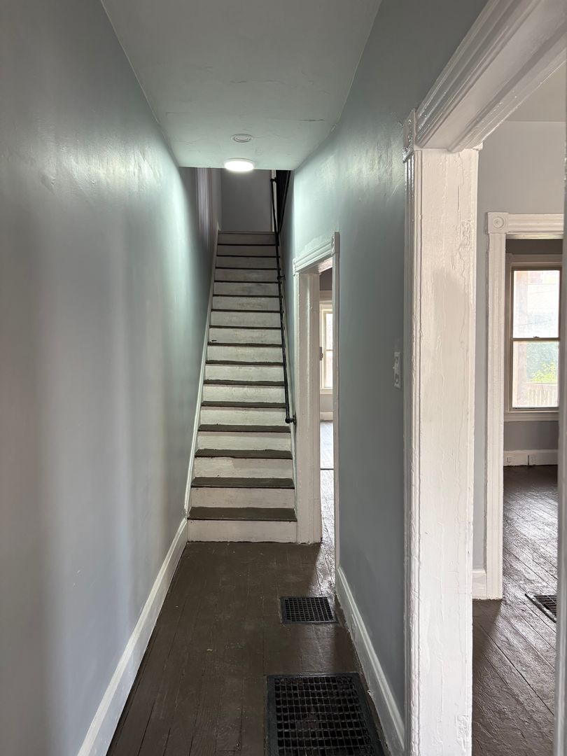 Recently renovated half side-by-side duplex. 3 bedrooms and 1 bath on 2nd floor; kitchen, dining, living and rear covered porch on main level. Small rear yard is shared. Street parking. Tenant responsible for all utilities. Electric BB heat. Laundry hook-ups in basement. Pets considered on a case-by-case basis - fees apply.