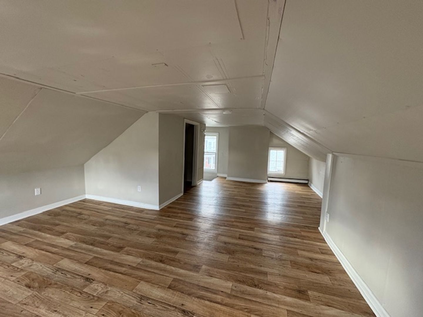 Recently renovated 2 bedroom 2nd floor apartment. Main level includes eat-in kitchen, laundry/mud room, living room, 1 bedroom, and full bath. The whole 3rd floor space is bedroom #2 and a closet.