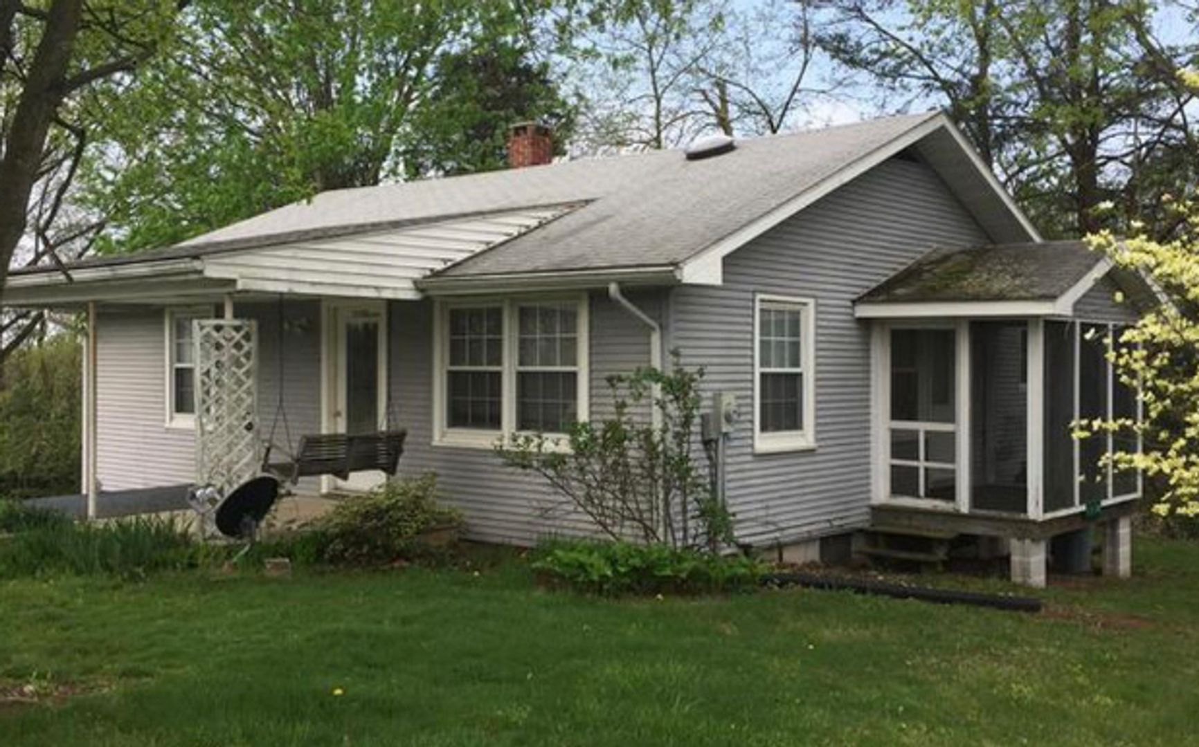 Covered front porch; screened side porch
